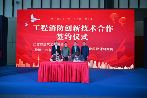 周伟副处长致辞 会议重磅环节,江苏省建筑工程质量检测中心有限公司与中国建筑设计研究院举行工程消防创新技术合作签约仪式,并发布合作平台。双方将整合优势资源,围绕防火实验、新材料研发等领域深度合作,推动消防技术向高效、智能、绿色升级。
