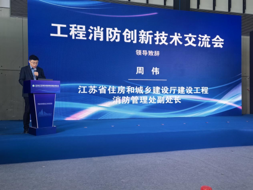 许国东秘书长 江苏省住房和城乡建设厅建设工程消防管理处副处长周伟致辞时强调,建筑消防安全是城乡建设底线,本次交流会对推动行业高质量发展意义重大。他提出,要坚守安全底线、强化科技创新、深化政产学研用协同,以平台凝聚合力,提升工程消防本质安全水平。